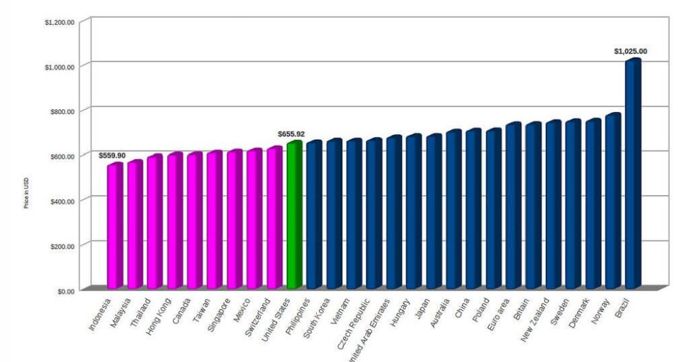 Вы купите один и тот же, по своей сути, планшет от Apple, iPad 2 в Сан-Пауле и в Сан-Франциско, в Москве или Париже. Но бразильцы переплачивают 56% за это волшебное устройства. То ли близость родины магического реализма сказывается, то ли просто не повезло жителям Бразилии.