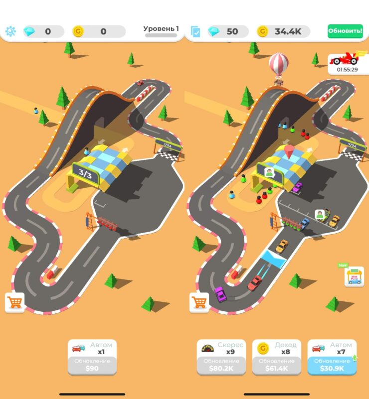 Постепенно прокачивая количество машинок и комфортное ожидание заезда, вы сможете зарабатывать больше денег и создавать улучшения на вашей трассе. Получится добавить различные элементы для ускорения и даже воздушные шары для привлечения клиентов. В общем, игра действительно интересная и может затянуть не на шутку. А главное, что она не требует постоянного внимания, и вы легко сможете играть в нее в течение рабочего дня.