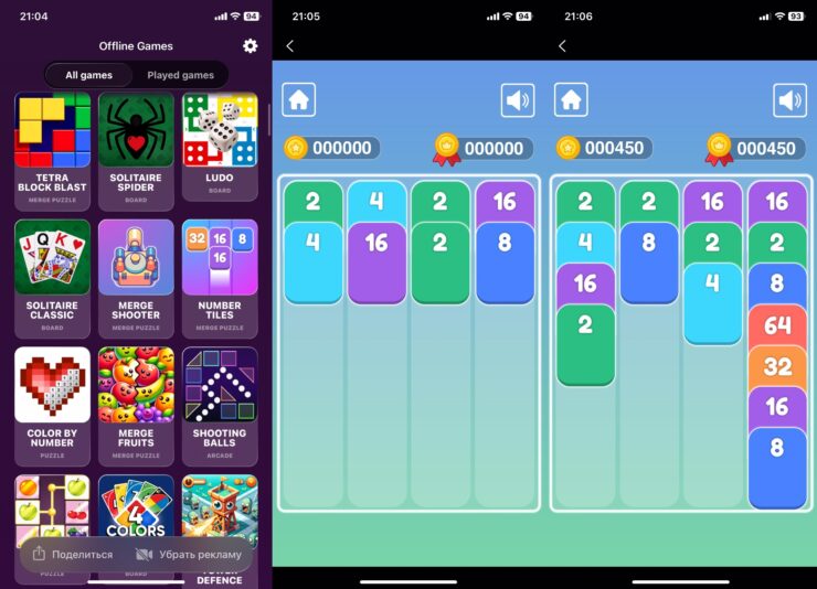 В приложении вы найдете множество разнообразных игр, включая известные 2048, головоломки с картами и фруктами, раскраски по номерам, несколько видов пасьянсов и многое другое. Offline Games поможет сделать ваш вечер увлекательным, предлагая широкий выбор развлечений. Приложение занимает немного места в памяти iPhone, поэтому советую держать его под рукой на случай необходимости.