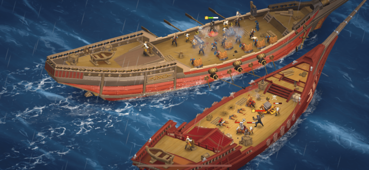 Со временем корабли сближаются, и начинается абордаж. Исход боя зависит от вашей стратегии: если в команде нет стрелков, противник с дальнобойными бойцами разберется с вами еще до абордажа. Так что грамотно продумывайте тактику, правильно используйте своих бойцов, и тогда вы точно сможете победить очередного противника и продвинуться дальше. В целом, это увлекательный способ посоревноваться с другими игроками в пиратской тематике.