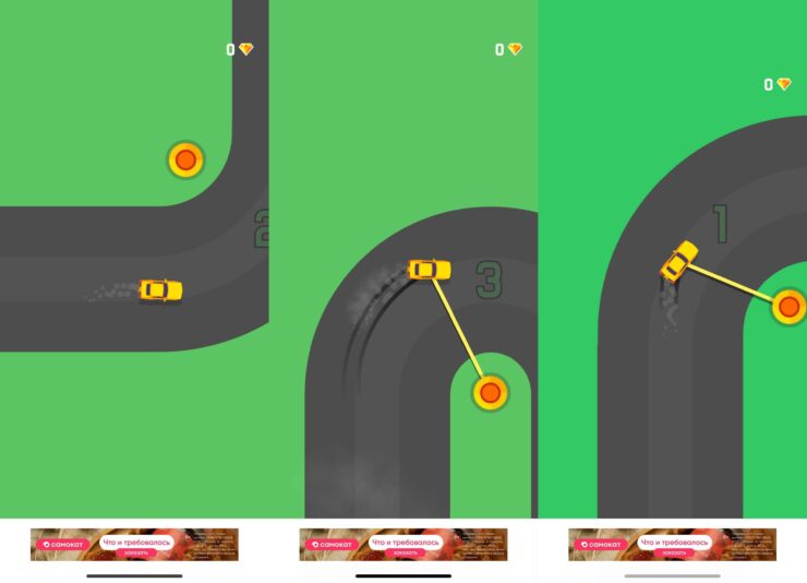 Суть игры заключается в том, чтобы пройти как можно больше поворотов. Обратите внимание, что права на ошибку у вас здесь нет. Малейшее касание обочины — и придется начинать все сначала. В гонках Sling Drift предельно простое управление. Машинка едет вперед сама, и для входа в поворот вам просто нужно вовремя касаться экрана. Единственным, но серьезным минусом игры Sling Drift можно назвать большое количество рекламы, которая отображается во время гонки внизу экрана и в виде большого баннера, как только вы завершите заезд. Однако от нее можно избавиться банальным отключением Wi-Fi и сотовых данных для конкретного приложения.