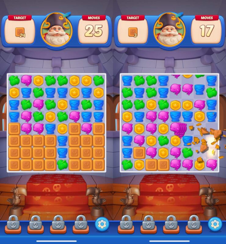 Приложение порадует вас приятной графикой в стиле Gardenscapes, а еще кучей различных бустеров и улучшалок. Здесь у вас не будет никакого строительства и прокачки дома или сада. Зато в зависимости от пройденных уровней вы сможете перемещаться с одного острова на другой и добывать новые сокровища. Ну а что еще надо настоящему пирату.