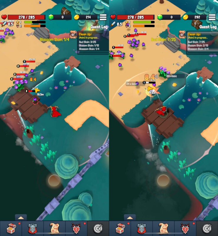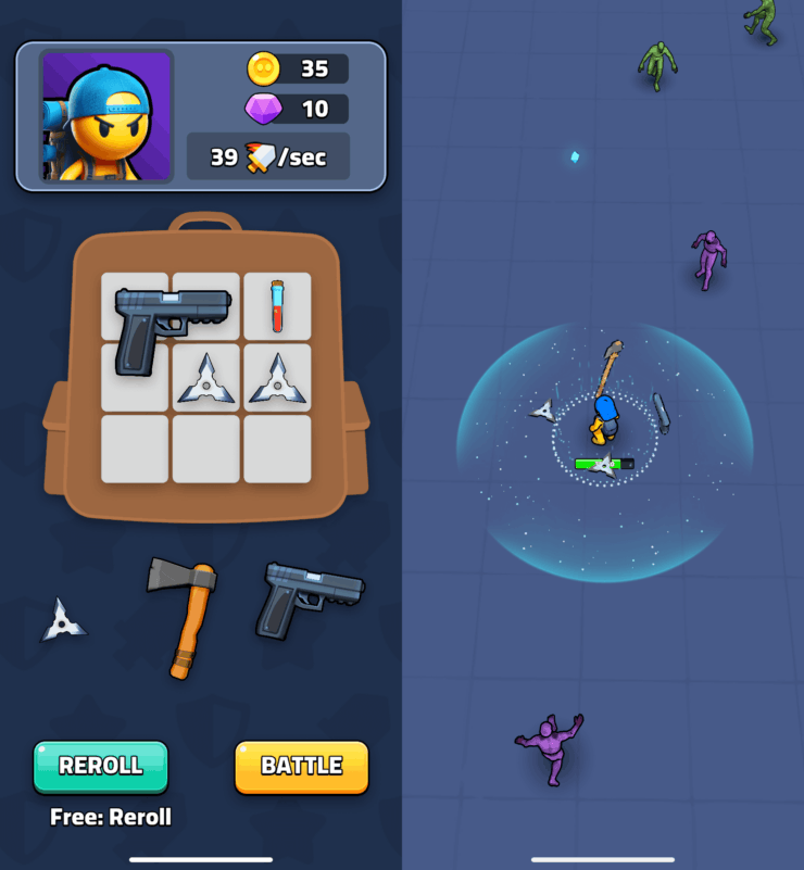Как и в Backpack Survivors, здесь очень простое управление за счет одного единственного джойстика. Стреляет или атакует мечом врага персонаж сам, как только противник попадет в радиус поражения. Обязательно продумывайте атаку, чтобы превосходящие силы не нанесли вам поражение. Иногда лучше напасть издалека и аккуратно избавиться от всех врагов по одному. Прикольная игрушка с приятной графикой, которая отлично работает даже на старых Айфонах.