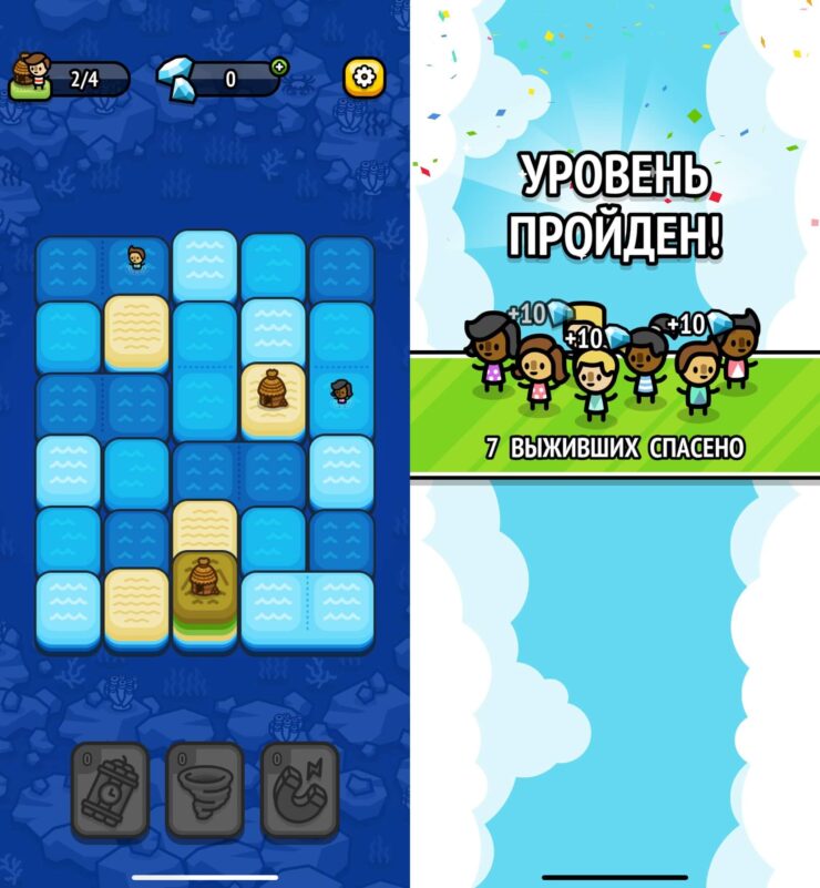 Как бы сильно нас не бесили игры три в ряд, но у каждого из нас точно на телефоне есть хотя бы одна такая. У меня это Sliding Seas. Но это не обычные три в ряд, а с прикольным сюжетом. Корабль потерпел кораблекрушение, и вам необходимо собрать всех выживших людей. Сначала для них нужно построить плот, потом переместить на сушу, а после этого создать убежище. И все это вы делаете, переставляя квадратики на игровом поле и собирая из них разные комбинации.