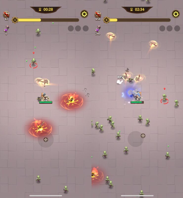 Во время сражения вы будете получать новые уровни и сможете прокачивать свое оружие. Больше всего вас порадует управление. Вам необходимо только двигаться в разные стороны, а стрелять, метать топоры или другое оружие ваш персонаж будет самостоятельно. Игра работает без проблем даже на старых Айфонах. Я тестировал ее на iPhone XR, работающем на бета-версии iOS 17.5, и даже там не было никаких глюков и подтормаживаний.