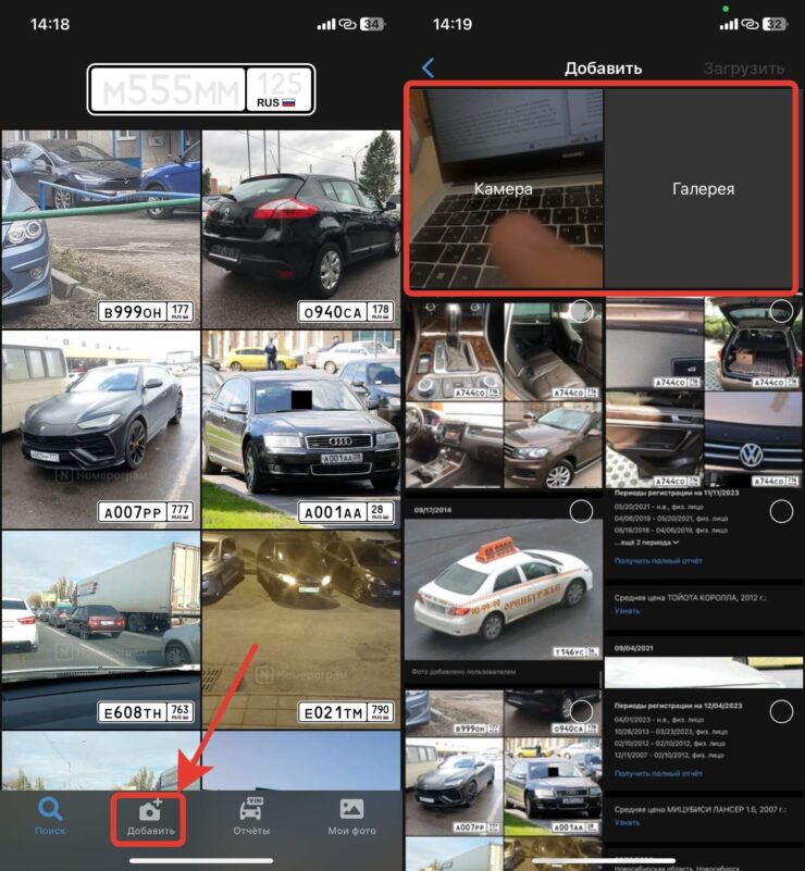 Если вы просто решили пробить через приложение свой автомобиль и никакой информации о нем в базе не нашли, то это можно очень легко исправить. Просто загрузите в Номерограм фото вашей машины, и когда сервис их распознает, вы легко сможете находить информацию о ней. Сделать это можно так: