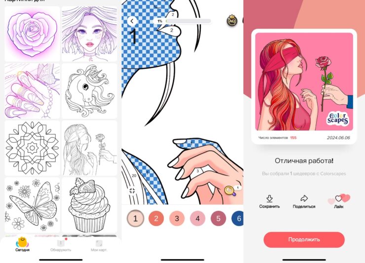 Кстати, по поводу вечернего досуга. Если вам по какой-то причине не зашло приложение Neuronation, но желание победить тягу к социальным сетям все равно присутствует, я рекомендую обратить внимание на программу Colorscapes. Это раскраска по номерам, но не такая простая, как те, которые мы рекомендовали ранее. Все изображения здесь разделены на более мелкие сегменты, которые вы можете увидеть, лишь как следует приблизив его.