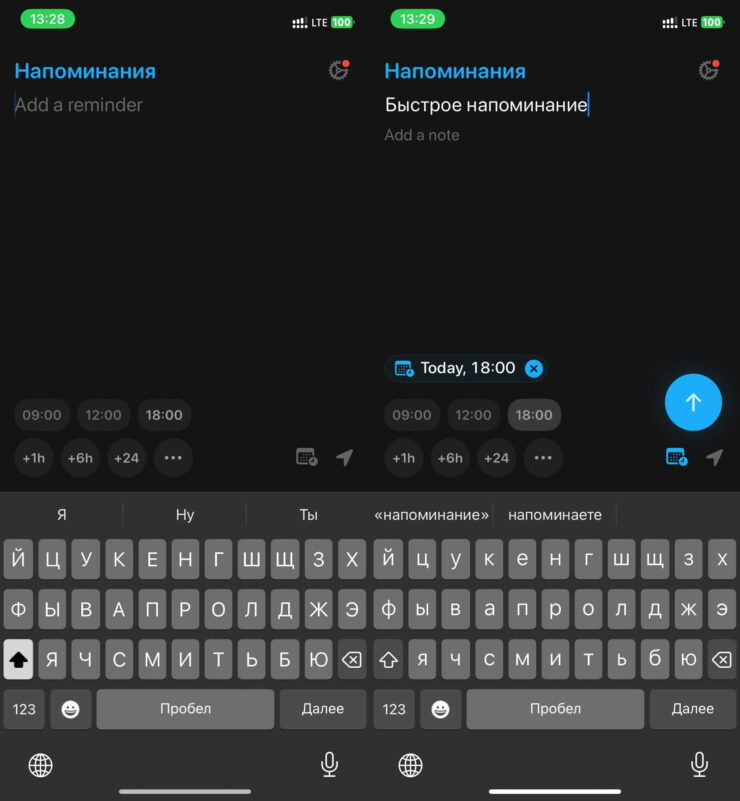 Но это можно легко исправить с помощью приложения Remind Faster. Это не отдельная напоминалка для Айфона, а просто создатель записей для встроенной программы. Сразу после открытия вы можете ввести текст напоминания, здесь же выбрать время и в одно касание добавить его в приложение «Напоминания». Вот такой интерфейс должен быть у стандартной программы. Apple стоило бы поучиться.
