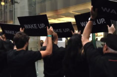Немного «потроллив» Apple в рекламе нового Galaxy компания Samsung перешла к более активным действиям. Южнокорейский гигант собрал несколько автобусов с демонстрантами и отправил их к магазину Apple Store в Сиднее. Прибыв на место, демонстранты устроили акцию протеста с табличками «Wake up» (проснитесь).
