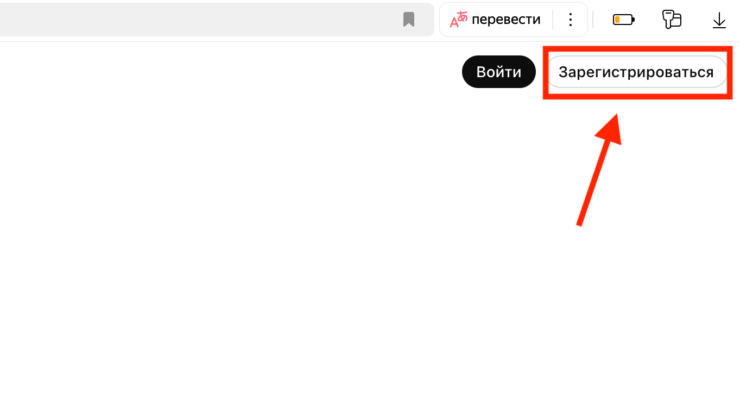 - Нажмите кнопку «Зарегистрироваться» в правом верхнем углу;