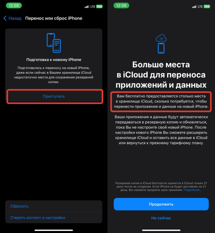 При переходе с Айфона на Айфон Apple дает неограниченное место под резервную копию в iCloud