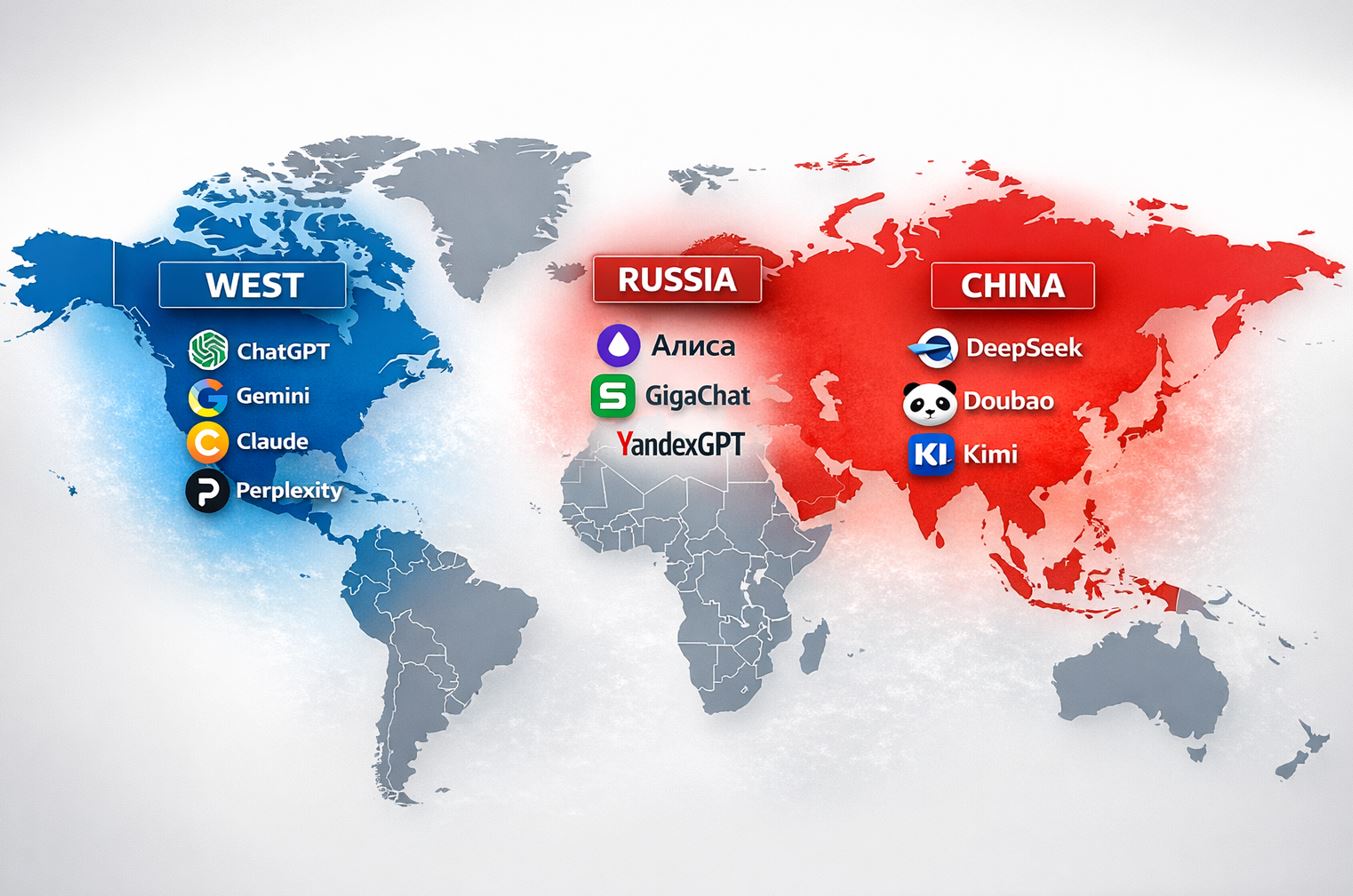 Помимо Яндекса, в веб-рейтинге a16z дебютировал и GigaChat от Сбера. Аналитики отмечают, что российская ситуация зеркально повторяет китайский сценарий, но в ускоренном режиме: санкции создали вакуум, а локальные продукты заполнили его менее чем за два года. Получилось три мировых полюса ИИ: западный (ChatGPT, Claude, Gemini), китайский (DeepSeek, Doubao, Kimi) и российский (Алиса, GigaChat).