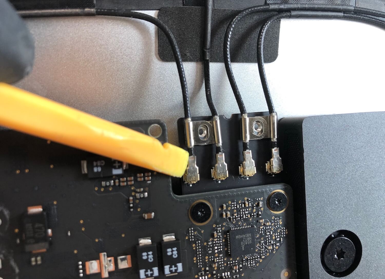 Далее в ход идет шлейф камеры, антенны Wi-Fi и винты, которые удерживают материнскую плату.