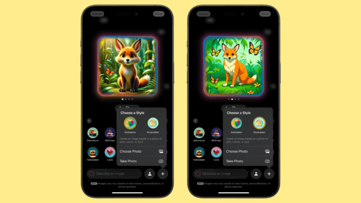 На выбор доступно лишь два стиля: анимационный, как в мультфильмах Pixar, и иллюстрация. Сделано это для того, чтобы вы не могли создать какие-либо картинки, которые могут ввести кого-либо в заблуждение. В остальном вы ограничены лишь вашей фантазией. Кстати, на iPad в этом же приложении вы сможете создать небольшой эскиз с помощью Apple Pencil, а нейросеть сама дорисует остальные детали.