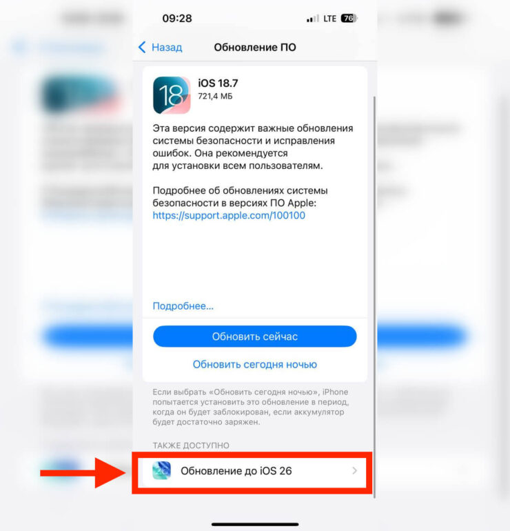 Как установить iOS 26, если Айфон предлагает iOS 18.7