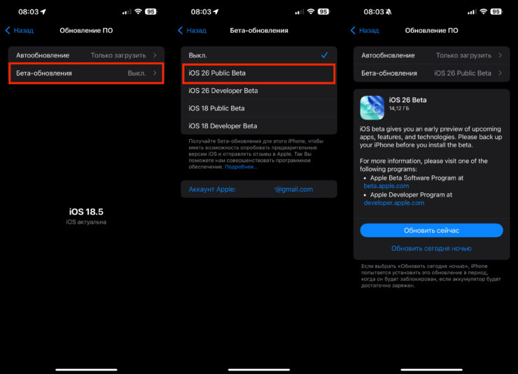 - Установите публичную бета-версию iOS 26 как обычное обновление.