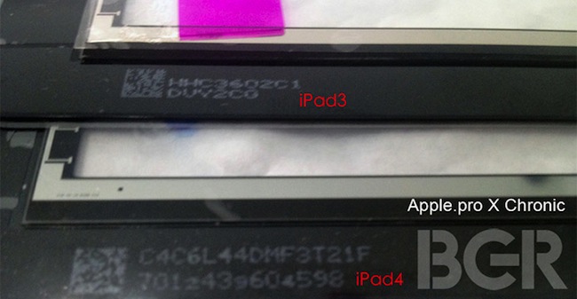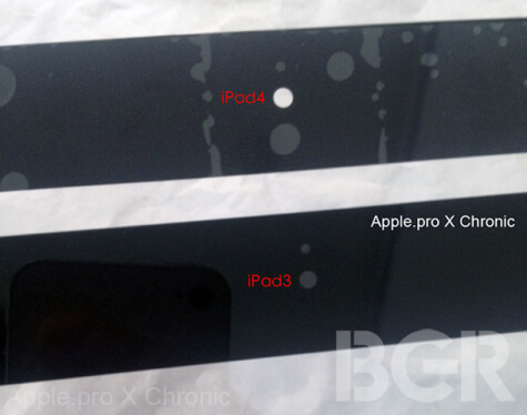 Если вы еще не привыкли к регулярным утечкам информации о новых продуктах Apple, то пора уже к ним привыкать. Видимо, это новая действительность, с которой мы в ближайшее время будем иметь дело. Так, вчера вечером уже знакомый нам ресурс Apple.pro опубликовал фотографии детали, которую он назвал элементами фронтальной панели «iPad 4». На фото видно, что отверстие под камеру FaceTime было увеличено, что дает повод ожидать дальнейшего улучшения этой камеры.