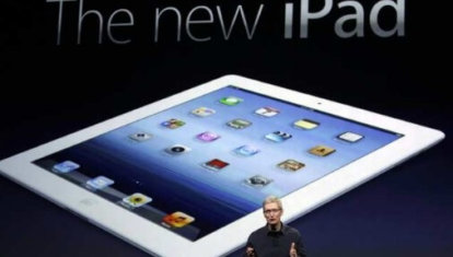 На фото Роберта Гэлбрейта для Reuters изображен новый iPad c запущенным на нем приложением iPhoto. Действие происходит в демонстрационной комнате после презентации, состоявшейся 7 марта 2012 года в Сан-Франциско, в ходе которого новый iPad был впервые показан широкой публике