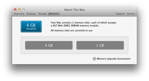 Второй причиной запустить стандартное меню, является обновленная информация в подпункте «About This Mac». Основная информация о системе выглядит также как и во всех предыдущих версиях Maс OS X, но главные отличия можно заметить лишь после нажатия кнопки More Info. Некоторые, ожидая увидеть привычный System Profiler, будут сильно удивлены, увидев новую абсолютно новое меню в этом приложении. Если честно, то подобная реализация предоставления информации о системе чем-то напоминает iOS, но все же немного более информативна, чем та, которую можно найти в мобильной версии операционной системы. Достаточно удобно отображения занятого пространства на жестком диске, теперь вы сможете узнать, какие именно файлы занимают у вас больше всего места и при необходимости избавиться от них. Также можно узнать объем установленной оперативной памяти и в какой именно слот она установлена. Если же у пользователя возникают неполадки в работе компьютера, то он может перейти на веб-сайт Apple с технической поддержкой, ссылки на который размещены прямо в системной информации.