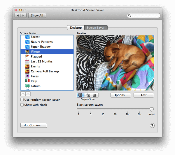 Не менее впечатляюще выглядят и два новых вида экранной заставки, даже не смотря на то, что та, которая стоит по умолчанию до сих пор выглядит не очень презентабельно. Заставки из iTunes и iPhoto созданы действительно талантливыми дизайнерами, позволяя наслаждаться прекрасным видом ваших фотографии в режиме слайд шоу, а заставка из iTunes отображает обложки из вашей библиотеки, с использованием очень красивых эффектов при перелистывании.