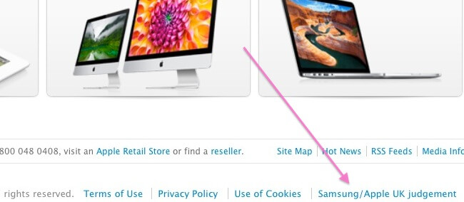 На днях в нижней части главной страницы британской версии сайта Apple.com появилась небольшая ссылочка (см. скриншот выше), которая ведет на страничку с извинением (конечно, если можно его так назвать). В целом его суть перекликается с классическим анекдотом, который мы обыграли в заголовке. В первую очередь шокируют формулировки, которые выбрал судья, сравнивая дизайн продуктов Apple и Samsung. Прочтите эти сроки и попытайтесь найти отличия между словами судьи и выступлениями Тима Кука на презентациях Apple: