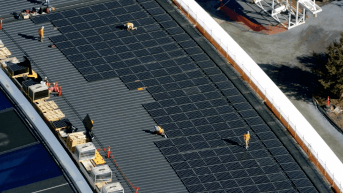 В остальном само здание выглядит вполне завершенным, а большая часть его крыши представляет собой солнечные батареи.
