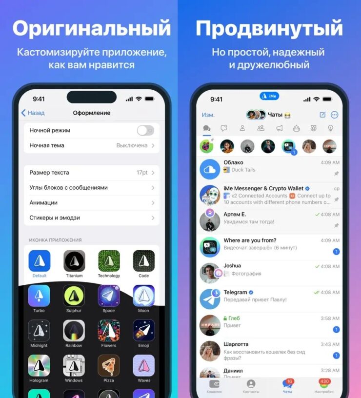 Если Nicegram делает Telegram более организованным, то iMe Messenger превращает его в целую экосистему. Внутри встроен ИИ-ассистент, который помогает писать сообщения, переводить тексты, создавать заметки и даже управлять задачами.