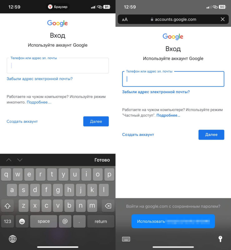 Но не думайте, что Яндекс Браузер — это идеальное приложения для выхода в интернет. У него есть и серьезные минусы. И главным из них я считаю невозможность подставлять пароли из связки ключей на iPhone. Вам придется заходить в настройки и копировать оттуда логины и пароли вручную. Следовательно, если для каких-то сайтов у вас созданы ключи доступа Passkey, то ими воспользоваться вы тоже не сможете.