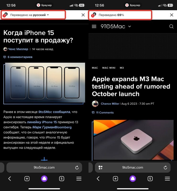 Автоперевод в Яндекс Браузере