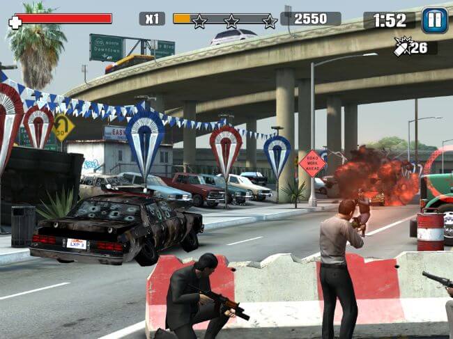 Геймплей достаточно прост: ничего не делаем – наш убийца покорно сидит в укрытии, тапаем по врагу – убийца отважно высовывается из укрытия и что есть мочи жмет на курок, стреляя в указанную точку. Подобный игровой процесс скрашен лишь периодическим передвижением по локации, которое тоже осуществляется благодаря свайпам по всплывающим точкам и перезарядкой обоймы. К счастью, игровой магазин может похвастаться огромным выбором самого различного оружия.
