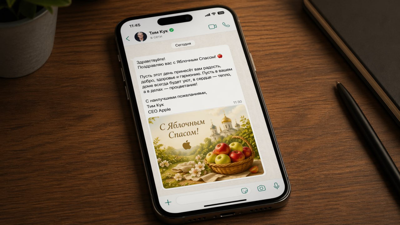 Тим Кук поздравил меня в Ватсапе с яблочным спасом. Как подделать любой скриншот в ChatGPT