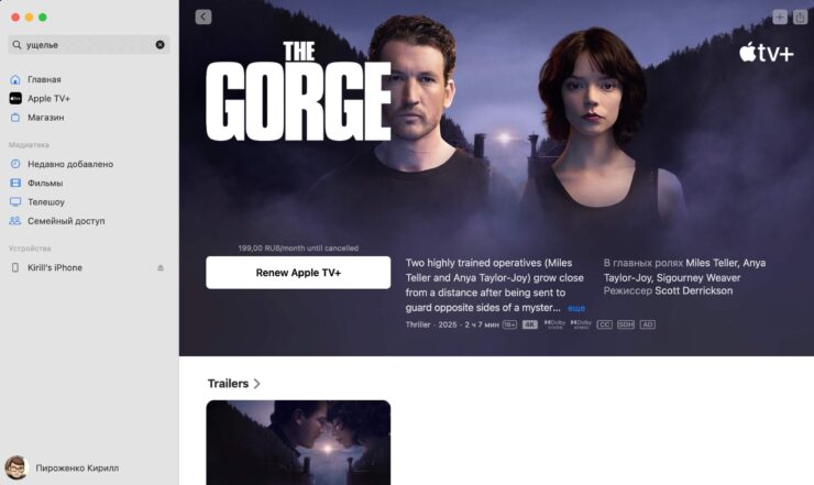 Посмотреть «Ущелье» от Apple можно уже сейчас несколькими способами. Во-первых, никто не мешает оформить подписку на стриминговый сервис Apple TV+, платить 199 рублей в месяц и получить доступ к нему из фирменного приложения или через веб-версию. Вот только есть у такого способа просмотра один достаточно серьезный минус. «Ущелье» не получило официальный русский дубляж. Фильм доступен на английском, испанском, итальянском, немецком, португальском, французском и японском. На этом всё.