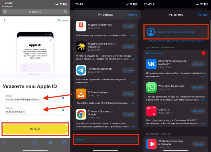 - Запомните или сохраните куда-нибудь тот Apple ID и пароль, которые вам предоставит Т-Банк;