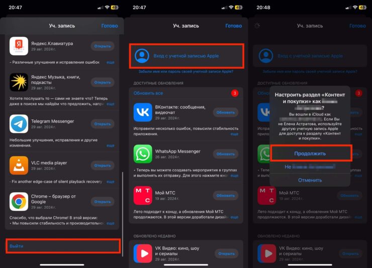 Обязательно верните в App Store свой старый аккаунт