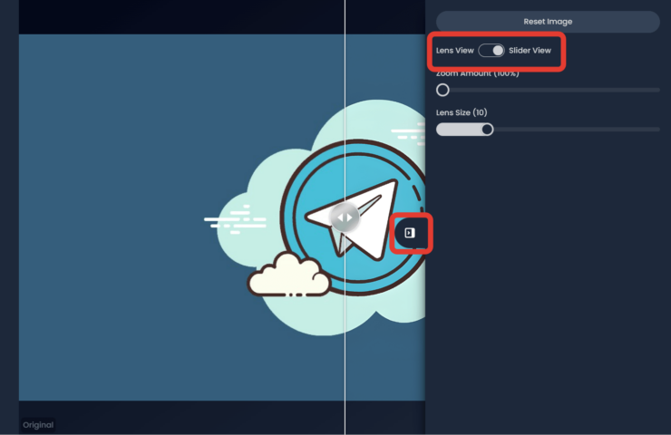 - Переключите тумблер с “Lens View” на “Slider View”.