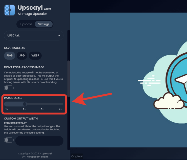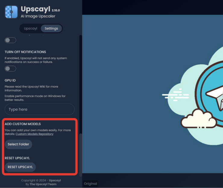 - Откройте приложение Upscayl и перейдите на вкладку “Settings”;
