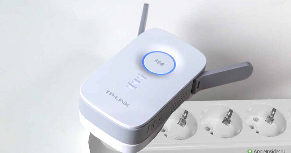 Установка усилителя Wi-Fi напрашивалась сама собой, и вот у нас в руках оказался RE350. Почему именно он? Во-первых, это устройство работает на частоте 2,4 ГГц (скорость до 300 Мбит/с) и 5 ГГц (скорость до 867 Мбит/с), а сеть в студии, где мы записываем новости Apple и другие видео, как раз работает на 5 ГГц. Во-вторых, данный усилитель работает с любым Wi-Fi-роутером или точкой доступа, а с AirPort Extreme совместимы далеко не все. А вообще, главным критерием выбора подобного устройства было наличие качественного приложения для iOS.