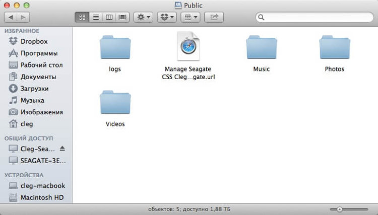 Диск автоматически появится в списке подключенных устройств (в OS X точно, в Windows тоже обещали, но мы не проверяли), достаточно кликнуть по нему, чтобы войти. На самом диске, в папке Public, доступной по умолчанию, есть файлик с иконкой браузера, открыв его, вы попадаете в web-интерфейс настройки диска. После того как вы согласитесь с лицензией, вам надо будет задать имя устройства, логин и пароль администратора и e-mail удаленного доступа (про это чуть позже). Диск полностью готов к работе.