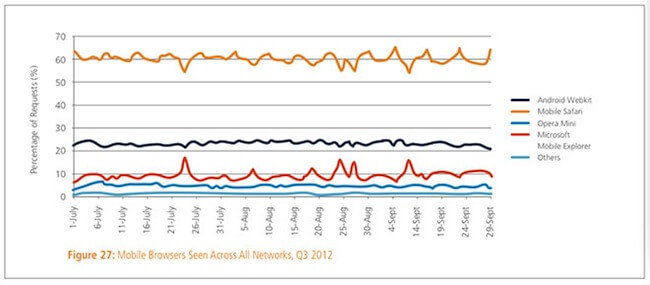 Примечательно, что у ближайшего конкурента Safari — браузера для Android, всего около 23 % рынка мобильного Интернета. Разница на самом деле очень существенная: несмотря на стремительный рост продаж устройств на операционной системе от Google, пользователи Android-смартфонов, видимо, реже выходят в Сеть. В Akamai подчеркивают, что приведенные процентные соотношения больше подходят Соединенным Штатам, поскольку основные исследования проводились именно на территории этой страны.