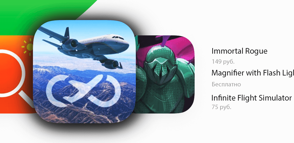 Infinite Flight Simulator (75 руб.) | Immortal Rogue (149 руб.) | Magnifier with Flash Light (Бесплатно)