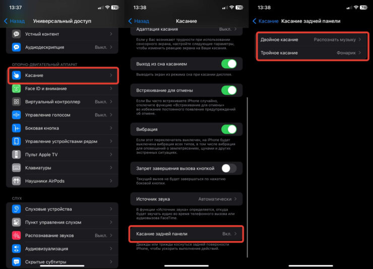 Касание задней панели на Айфоне