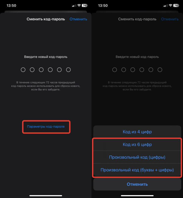 - Переключитесь на 6-значный или произвольный пароль и установите комбинацию цифр и букв, которую знаете только вы.