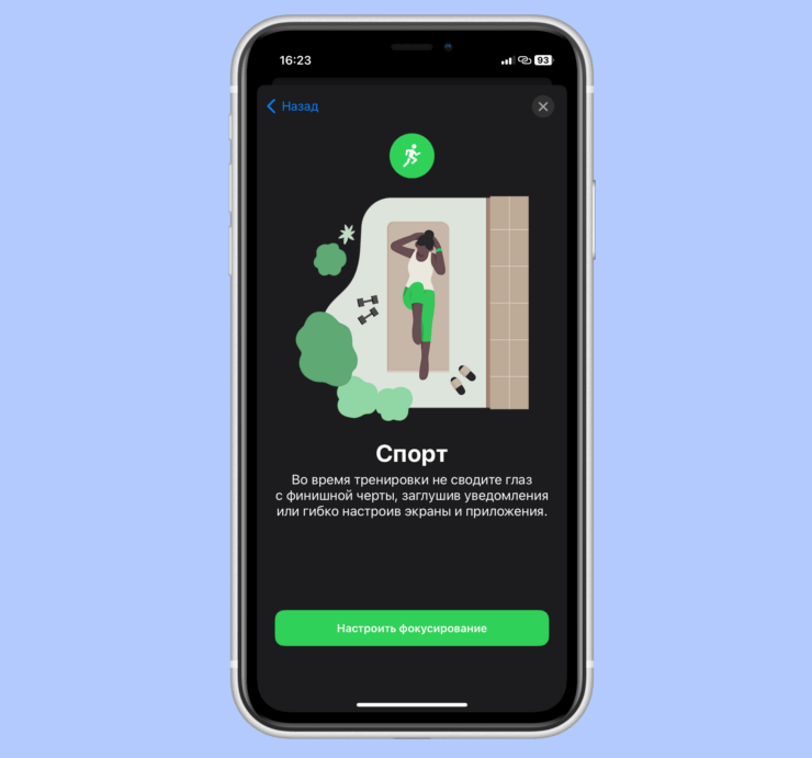 Для спорта на iPhone и Apple Watch можно создать специальное фокусирование