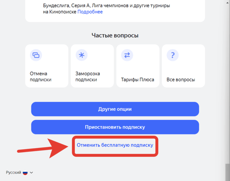 - Пролистайте в самый низ и выберите “Отменить бесплатную подписку”;