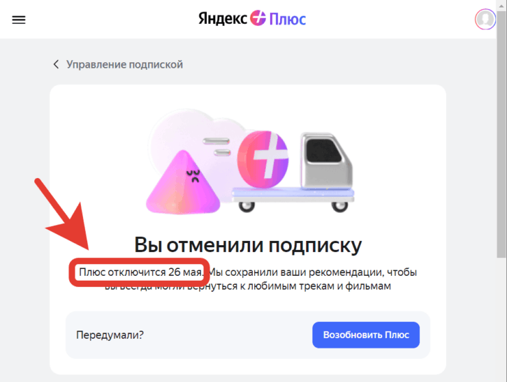 Обратите внимание, что даже после отмены подписка продолжит действовать до той даты, которая изначально была указана. В моем случае это 26 мая. Вот так легко и просто можно бесплатно пользоваться Яндекс Плюс и всеми сервисами, которые входят в эту подписку.