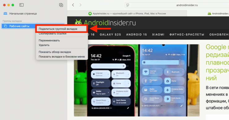 Группами вкладок на iPhone, iPad и Mac можно легко поделиться