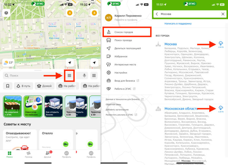 Обратите внимание, что карты в 2GIS весят достаточно много