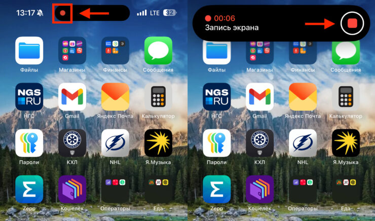 - Для окончания записи не обязательно открывать Пункт управления, просто коснитесь красной иконки, обозначающей запись в верхней части экрана iPhone.