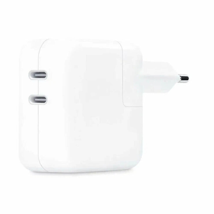 - Адаптер Apple мощностью 18W, 20W, 29W, 30W, 35W, 61W, 87W или 96W. Такие можно приобрести отдельно или найти в комплекте со старыми iPhone 11 и любыми Макбуками;