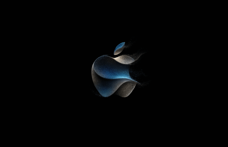 В случае с презентацией 12 сентября Apple выполнила свой логотип в цветах будущего iPhone 15 Pro. Здесь вы найдете синий, серый и немного серебристого цвета. А то, что яблоко выполнена в стиле напыления, многие связывают с титановым корпусом в новом iPhone. Но просто посмотрите, как стильно смотрится эмблема компании из Купертино на обычном черном фоне.